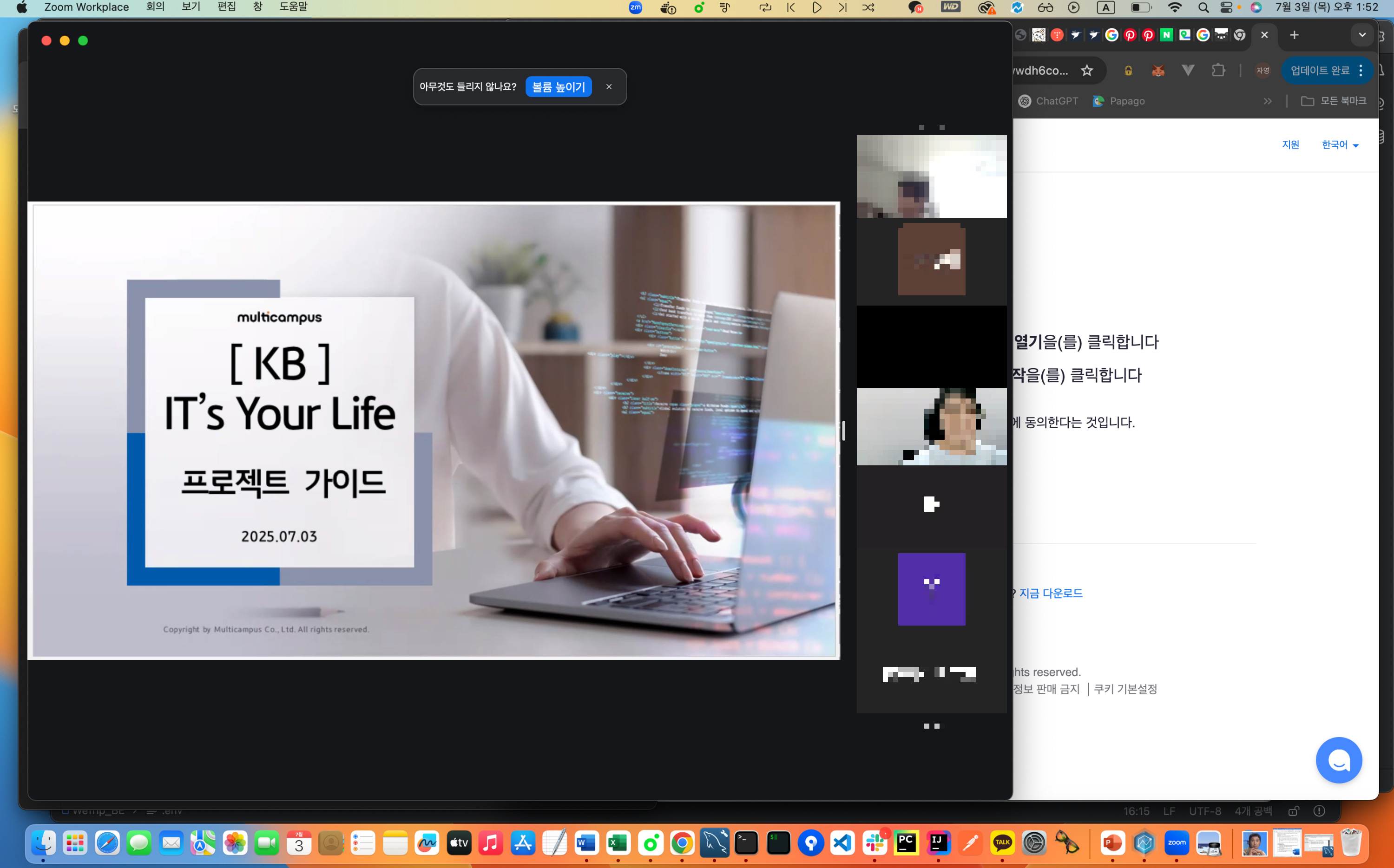 #0. 들어가는 말안녕하세요! KB ITYL 6기 기자단 조자영 입니다.이제는 벌써 8월이네요.. 정말 시간이 거의 T익스프레스를 타고 흘러가는 것 같습니다 🤣 프로젝트 시작한지 얼마 되지도 않았는데 벌써 중간 점검까지 일주일 남았어요.. 심지어 저희 팀의 중간점검의 발표자는 저랍니다..^__^;; 7월 9일부터 시작된 프로젝트는 지금 기획 단계와 기획 고도화 과정을 거쳐 개발 중기 단계를 거치고 있습니다! 그리고 그 고도화를 이끌어준 요소가 바로 프로젝트 멘토링이었습니다! 😸 저는 오늘 정말 제목 그대로 굉장했던(positive) 프로젝트 멘토링에 대해서 정말 생생한 후기를 작성해보고자 해요.. 로직이 탄탄한 자들만 살아남는 프로젝트 멘토링.. 지금부터 후기글 시작합니다 🧚🏻 #1. 주말 멘토링..